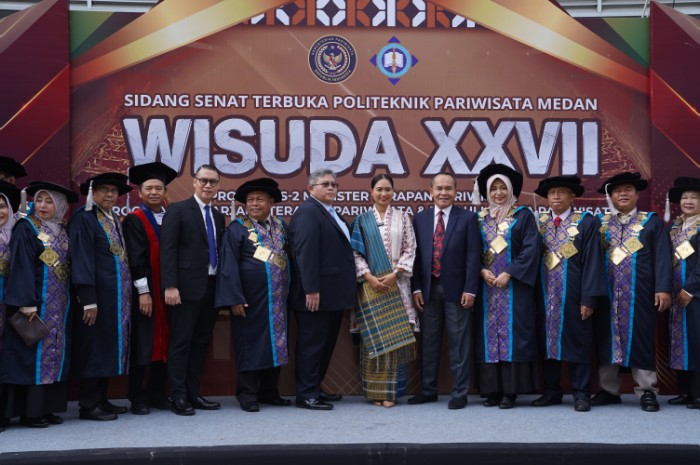 Wisuda ke-XXVII Tahun 2025 dengan tema “Empowered with Skills, Ready to Lead” dihadiri Wakil Menteri Pariwisata Ni Luh Puspa, Sekretaris Kementerian Pariwisata Bayu Aji, Sultan Deli ke-14 Seri Paduka Sultan Mahmud Aria Lamantjiji Perkasa Alam Shah, Asisten Deputi Peningkatan Kapasitas Sumber Daya Manusia Aparatur dan Pendidikan Vokasi Kementerian Pariwisata Andar Danova L. Goeltom, Asisten Deputi Peningkatan Kapasitas Sumber Daya Manusia Industri Kementarian Pariwisata Faisal.
