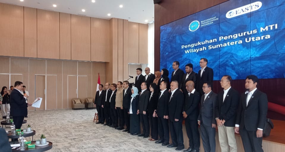 Medan, 3/1 (indonesiaaktual.com) – Ketua Umum Masyarakat Transportasi Indonesia (MTI) Dr. Ir Haris Muhammadun, ATD, MM, IPU, di Medan, Sumatera Utara (Sumut), Selasa (3/2/2026) melantik/mengukuhkan kepengurusan MTI Sumut Periode 2026 – 2028.