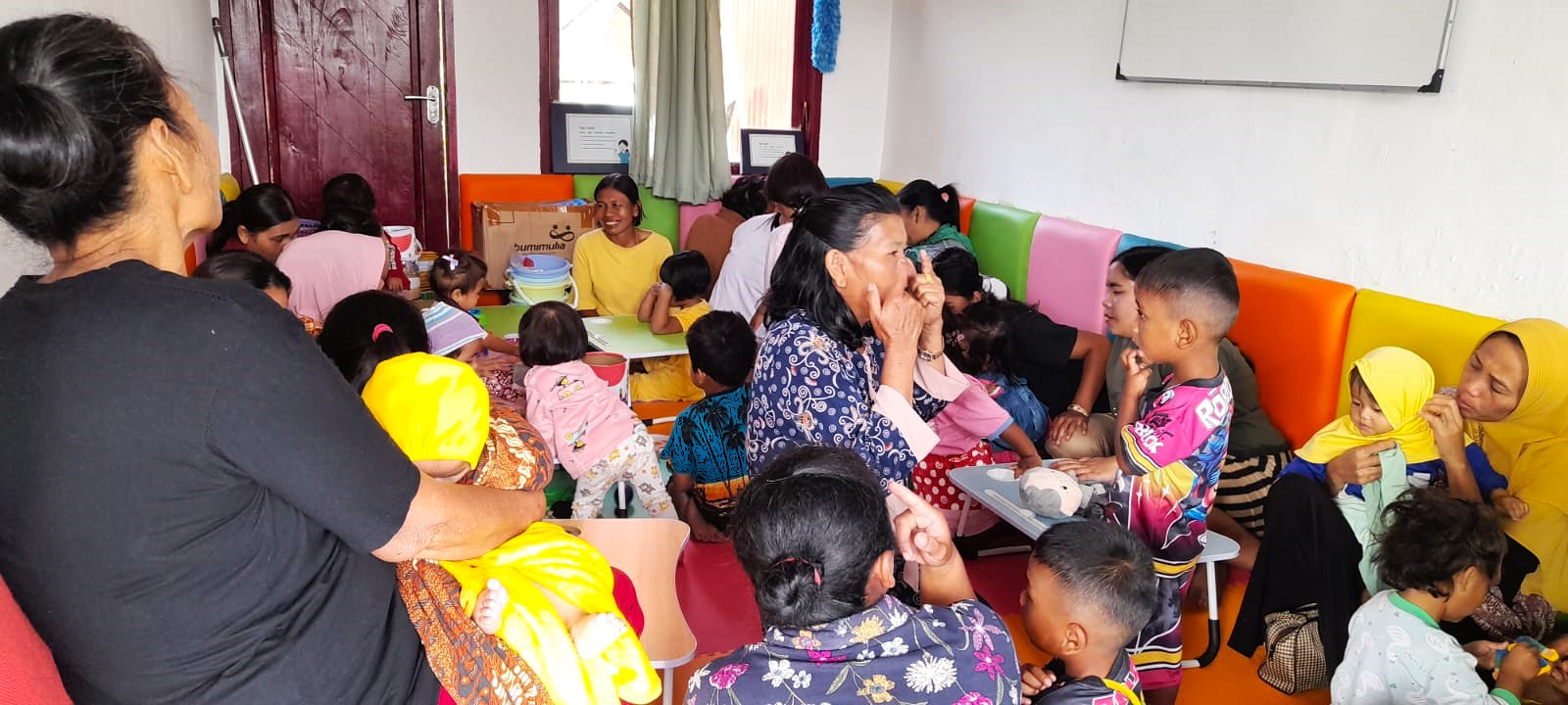 Ruang itu dilengkapi dengan sarana bermain dan belajar yang disesuaikan dengan kelompok usia anak, sehingga memungkinkan pelaksanaan stimulasi secara lebih terstruktur dan aman.